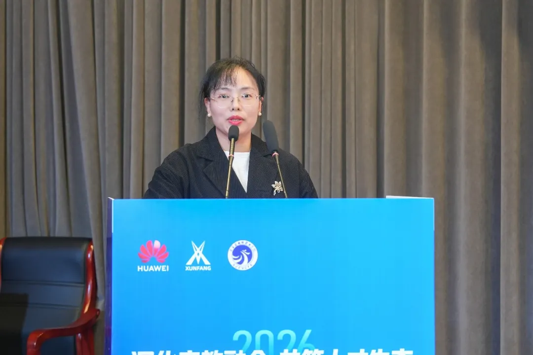 石家庄财经职业学院校长赵建华在致辞中分享了学校多年来紧跟国家职教战略部署,持续深化内涵建设所取得的瞩目办学成果。他表示,ICT人才培养绝非高校的“独奏曲”,而是高校、企业、生态伙伴协同发力的“大合唱”。自与华为、讯方共建ICT学院以来,三方同心聚力,成效显著。学校将以开放的姿态,持续向各院校学习先进经验,共同为数字河北、制造强国建设贡献更多职教力量。